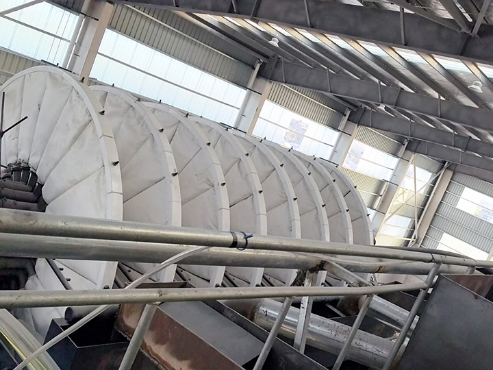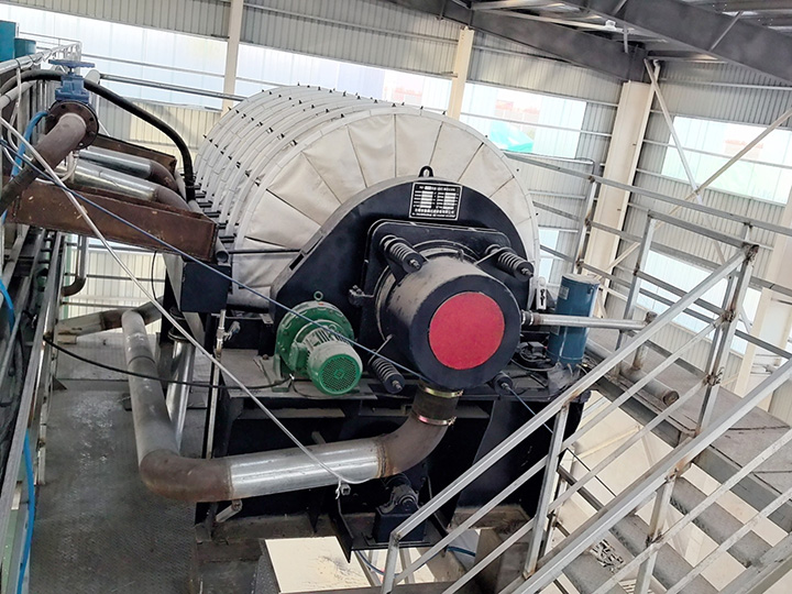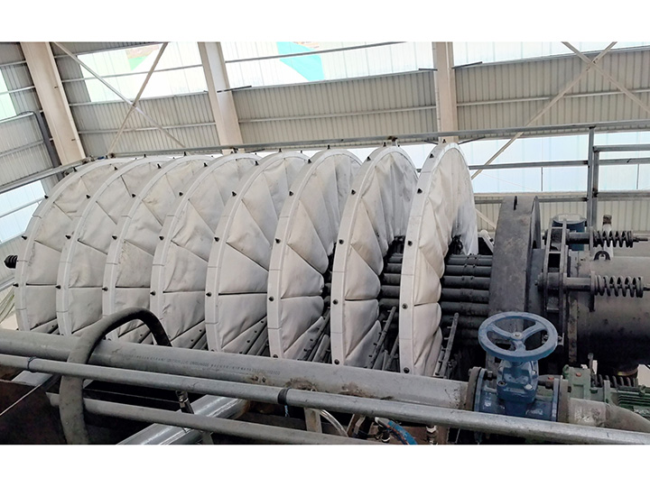 濾布清洗采用自動清洗裝置,做到邊工作邊清洗,保持了良好的脫水效果。